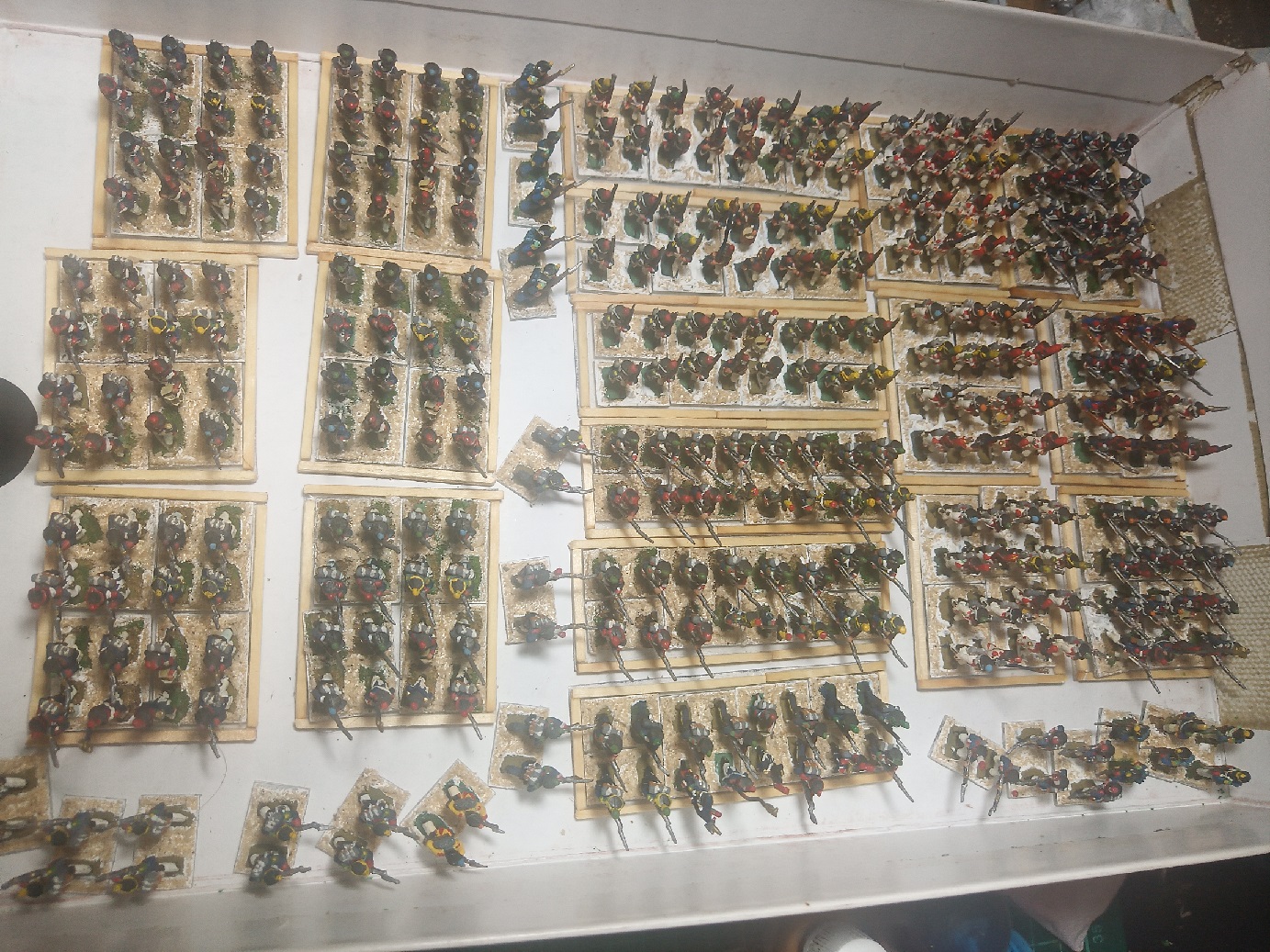 After many hours of organising the various figures into units, removing them from bases and gluing onto new bases, I can now inspect them for painting.