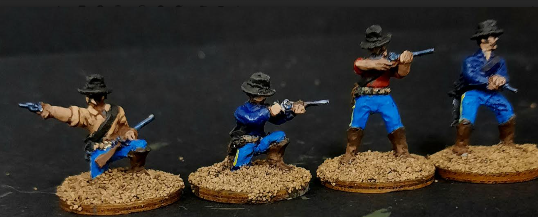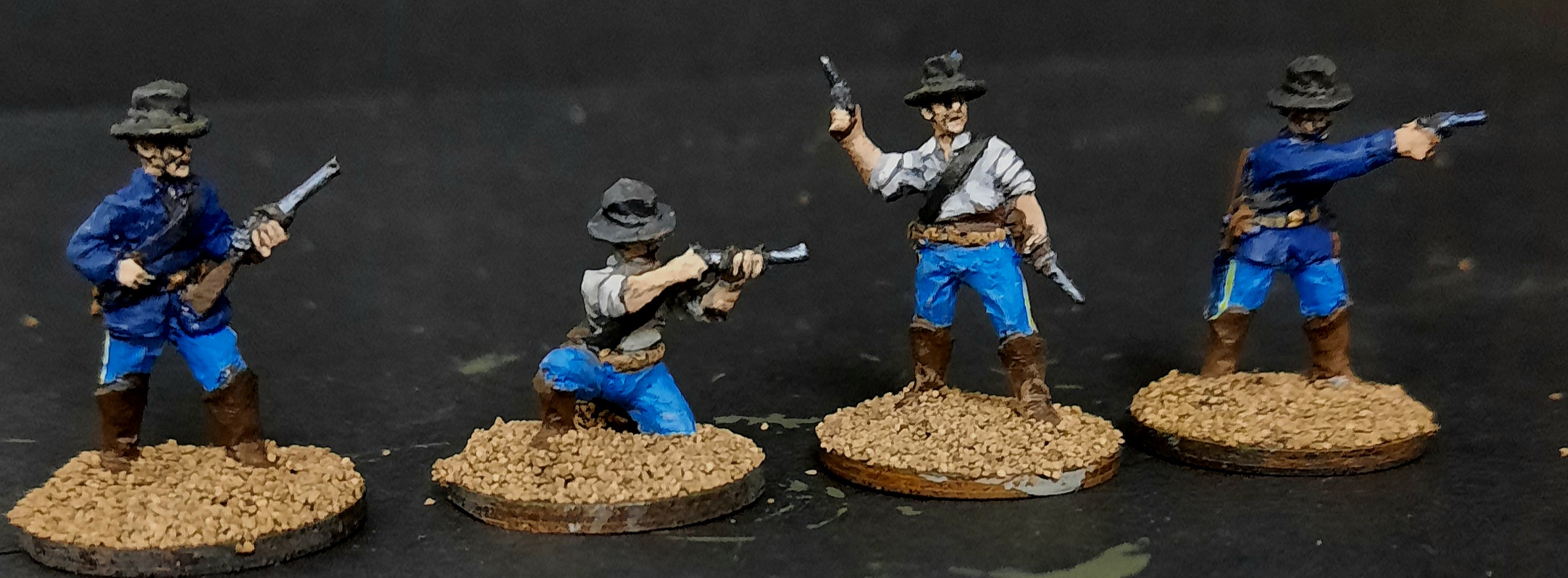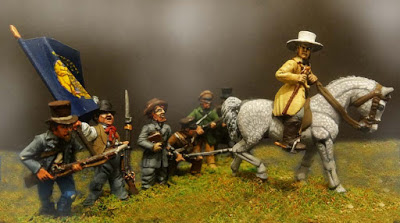 28mm Sterling Price and the Missouri State Guard 1861. Price is a conversion of the Front Rank mounted Napoleonic civilian gentleman. The Missouri State Guard are a mix of figures, Cannon Fodder, Dixon. Empress.