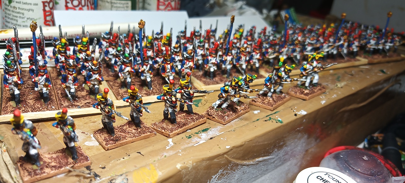 I will go through the steps to get 18 small battalions (of 18 figures each) of French infantry completed.