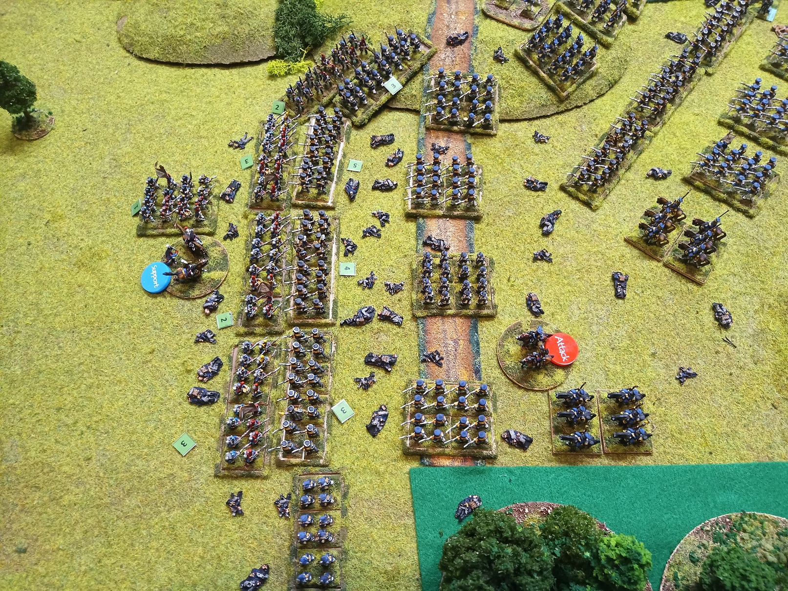 The second French cavalry division took heavy casualties and retired to the reform area. They can now at least cover the infantry retreat.