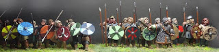 The figures are all 28mm. There are a mix a makes. The warriors and Fyrd are Musketeer miniatures, Lord Haidric is unknown, the peasants are Perry, Foundry and Black Tree. Brother Pestus is Eureka from their Conquistador line, Druic is Garrison.